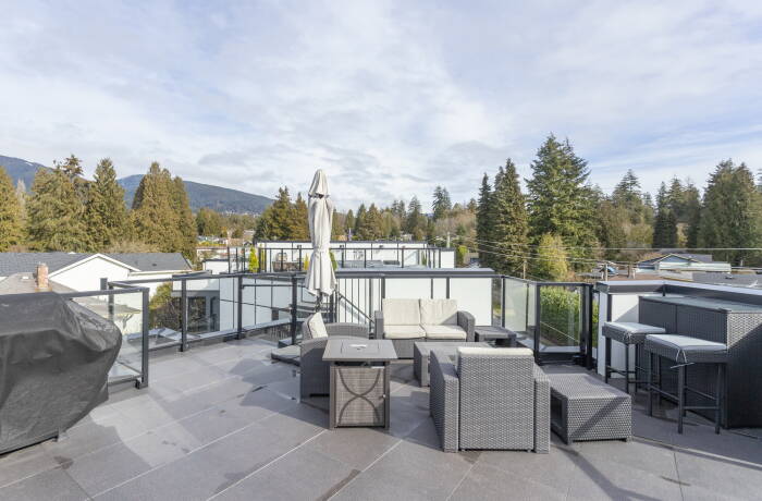This stunning townhouse in North Vancouver is ideal for both families and business professionals. Whether you're on vacation or need a cozy place for a few months, we've got you covered. Relax on the 500 sq. ft. rooftop patio with panoramic views of downtown Vancouver, the water, and Canada Place. At the back, enjoy breathtaking views of the North Shore Mountains.